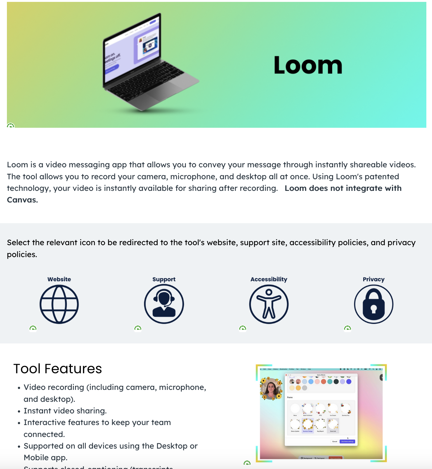 - 3Authored pages for Loom, Labster, Respondus LockDown Browser, Honorlock, and AR/VR